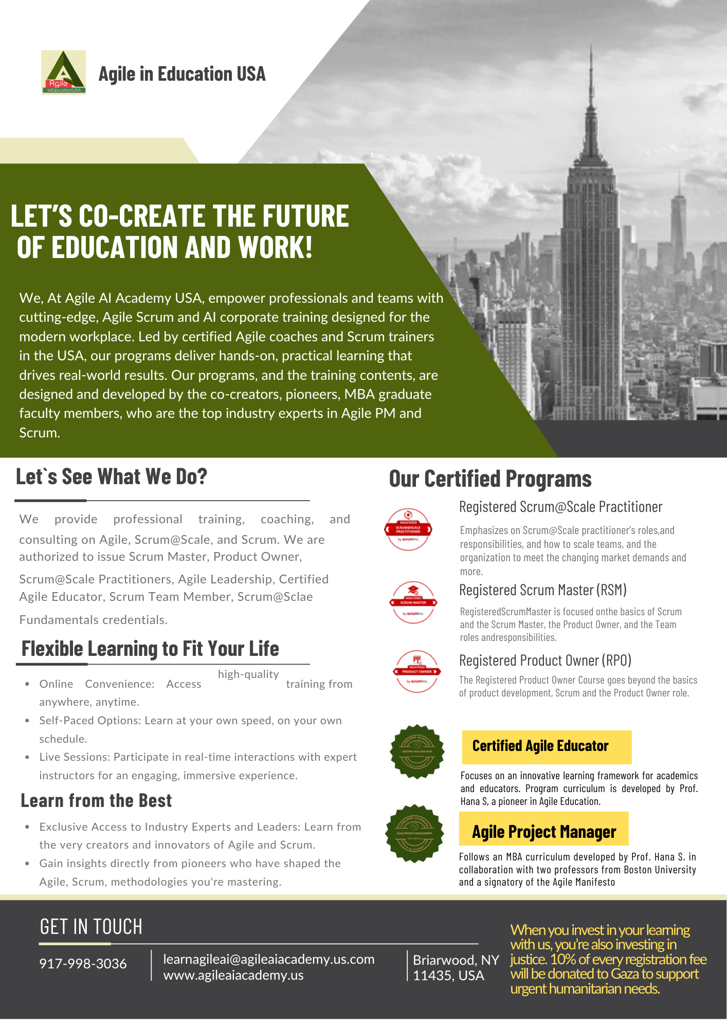 Numerous Agile Scrum certification institutions have received international acclaim for their exceptional contributions to the field. One such example is Agile in Education USA (AiEUSA), a distinctively recognized institute and a pioneer in applying Agile, Scrum and Scrum@Scale to the field of education and corporate training.