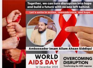 MESSAGE —— The Chairman, Interfaith Commission for Peace & Harmony (ICPH), and the Secretary General Albaraka Welfare Trust International (Albaraka Trust ) led by His Eminence Ambassador at Large for Global Peace and Human Rights Imam Allama Ahsan Siddiqui on World AIDS Day 2025.