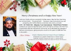 CANADA – Dec 25, 2025, a Prominent Senior Muslim Scholar, the Chairman of Interfaith Commission for Peace & Harmony (ICPH), and the Co-Chair Pakistan of International Religious Freedom Roundtable for Pakistan (IRF Pakistan) led by His Eminence Ambassador at Large for Global Peace and Human Rights, Imam Allama Muhammad Ahsan Siddiqui extends warm Christmas greetings to the Christian community in Canada, Pakistan and across the world. He said that the Noble Birth of holy Jesus (PBUH) was a blessing for all universe who came to establish Peace, Tolerance and Harmony among Humans around the World.