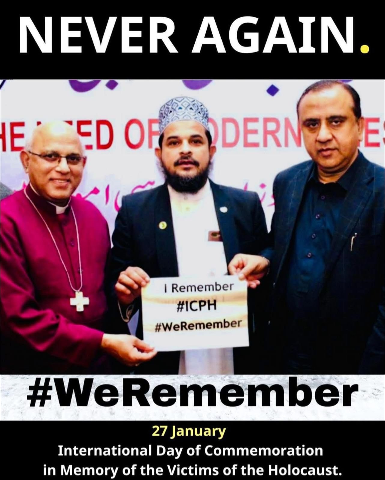 Ambassador at Large for Global Peace & Human Rights and Chairman, Interfaith Commission for Peace & Harmony Imam Allama Muhammad Ahsan Siddiqui said I praying for all the victims, families and loved ones of those who suffered and died during the Holocaust. We stand in #solidarity with all Jewish people in across the world. The Interfaith Commission for Peace & Harmony (ICPH), the International Religious Freedom Roundtable for Pakistan (IRF Pakistan) and the Albaraka Welfare Trust International (ABWTI) believe everyone, no matter their race, gender, age, religion, or ethnicity, deserves to be valued and appreciated. We reaffirm our commitment to peace, and vow to fight against all forms of discrimination and hate. In Abrahamic family, we respect each other and believe in dialogue and uniting against evil!